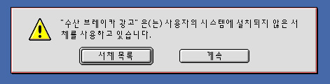 '시스템에 설치되지 않는 서체를 사용하고 있습니다' 문구가 자구 떠요~