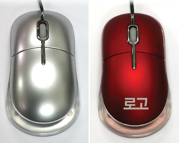 레드색 마우스 로고 글씨를요 실버색의 마우스 같은