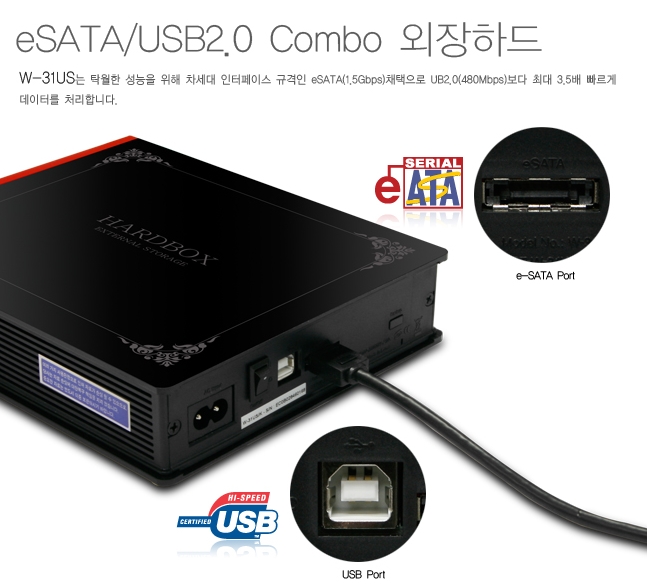 본인 외장케이스와 모양은 비슷하지만 뒤에 해당 포트가 있는 W-31UF로 사용하시는게 좋습니다.(G4에서 외장에 1GB 복사하는데 1~2분이면 됩니다.)