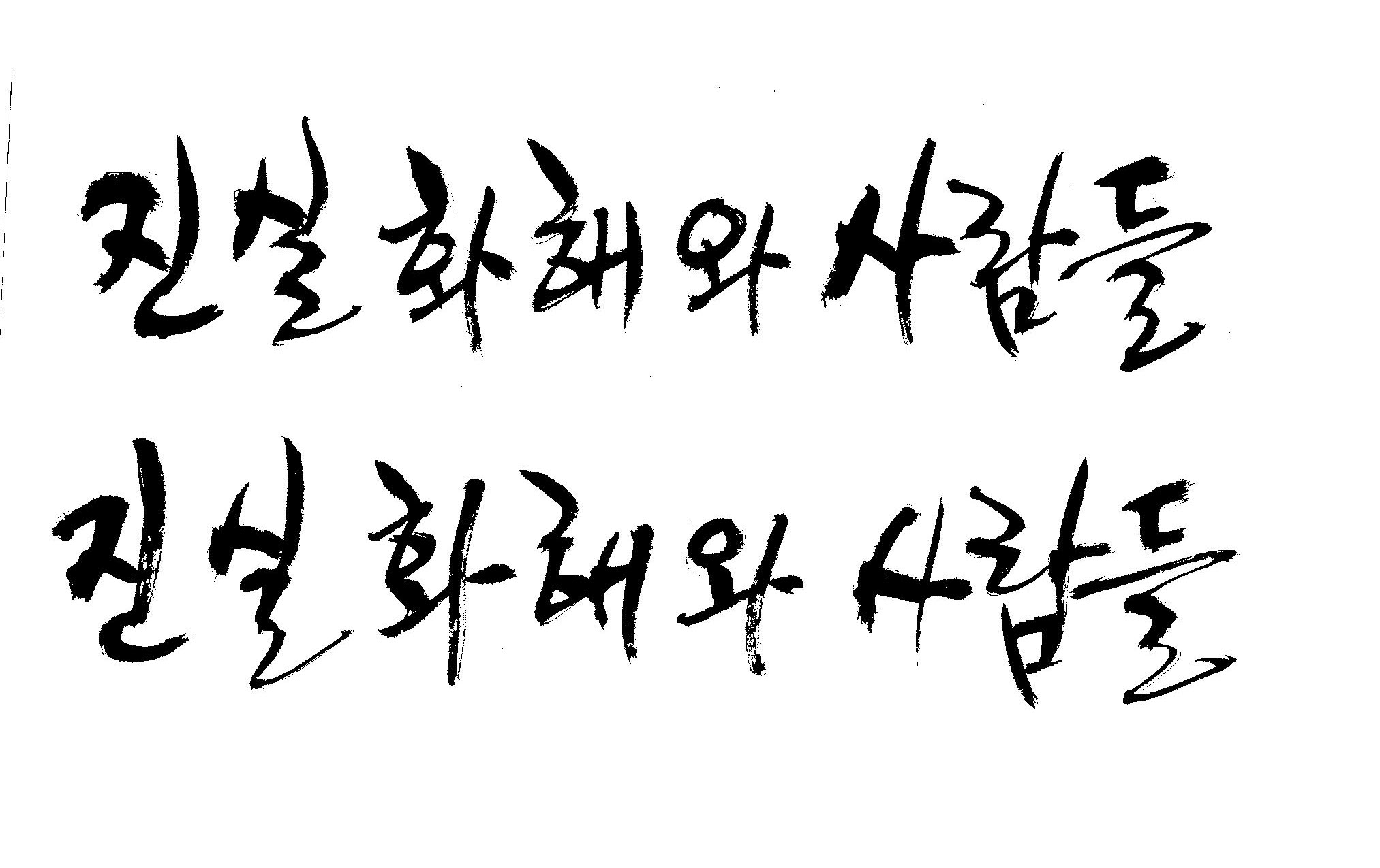 진실화해 와 사람들 캘리 부탁드립니당^^ 김철호 일반 1 8214 2009.01.30 09:50 > > 사보시안에 표지 메인 글짜로 쓸려고 하는데. > > 꼭 좀 부탁드려용^^ > > "진실화해 와 사람들" > > 바쁘신데 이렇게 부탁 드려서 죄송하고요 > > 새해 복 많이 받으세요! > > 감사합니다. >